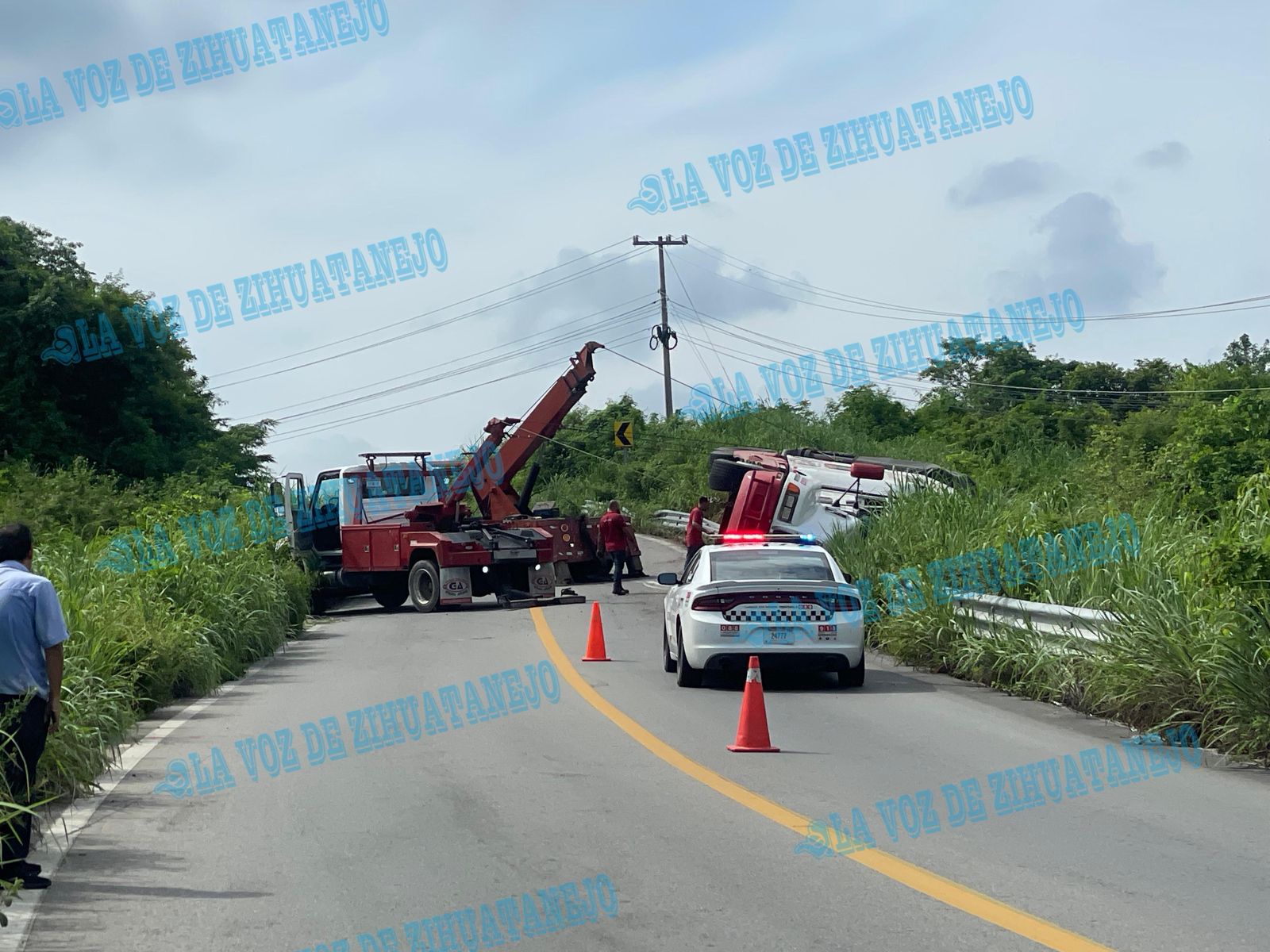 Zihuatanejo, Gro., (Octubre 8, 2025).- Aparatosa volcadura de un camión de la marca Kenworth, tipo torton, se registró la mañana de hoy cerca de la localidad de Palos Blancos, en la carretera federal con dirección a Zihuatanejo. A pesar de lo espectacular del accidente, ocurrido alrededor de las 6:30 horas, no se reportaron personas lesionadas, solo daños materiales y el retraso en la circulación vehicular.