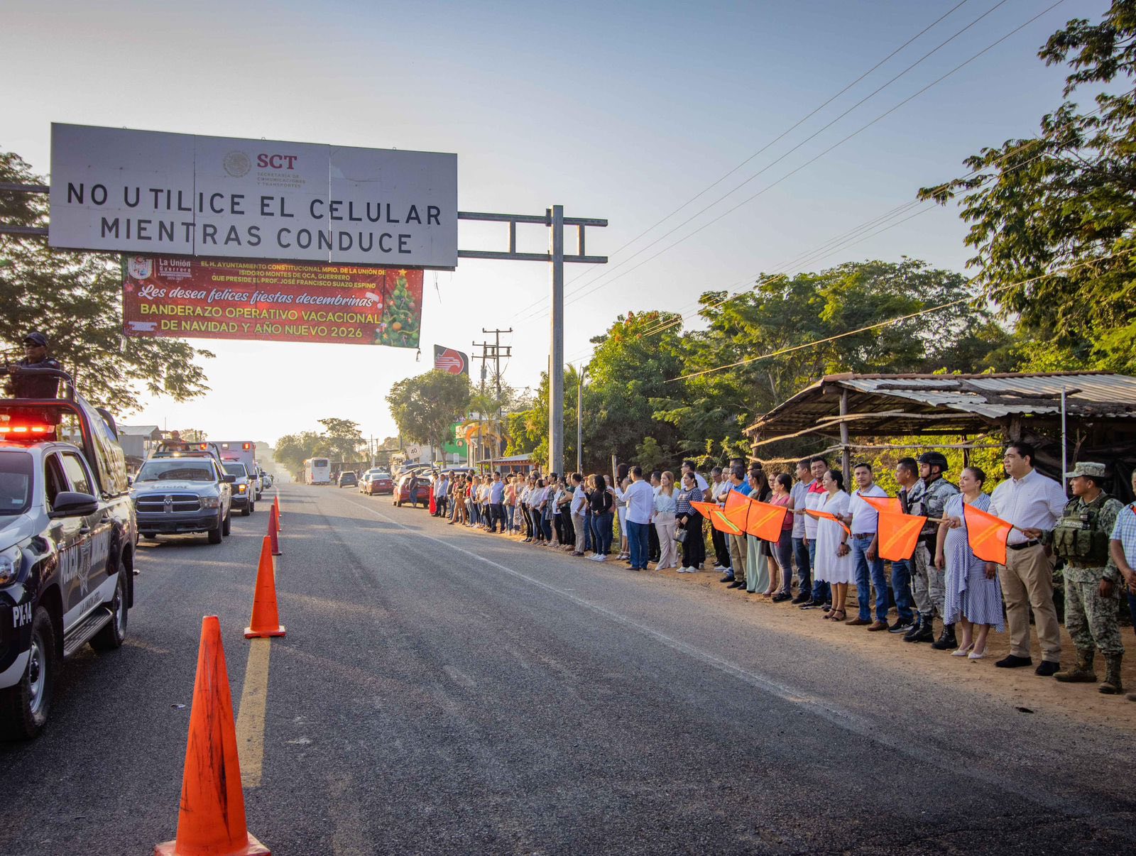 La Unión, Gro., (Diciembre 18, 2025).- Con el objetivo de garantizar la seguridad y el bienestar de la ciudadanía durante el periodo vacacional de fin de año, el presidente municipal José Francisco Suazo Espino dio el banderazo de inicio del Operativo Vacacional Decembrino 2025.