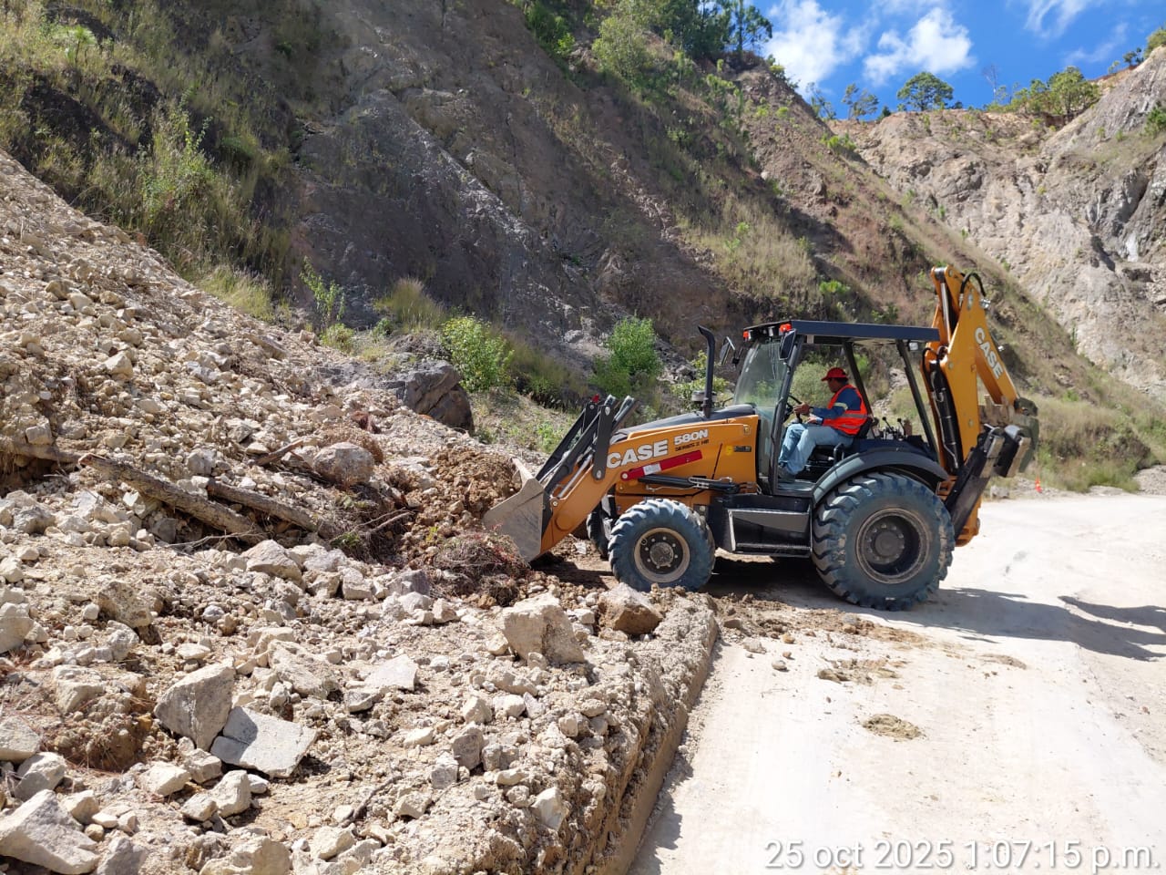 Destacó que se han logrado avances significativos en la extracción de material producto de los derrumbes, gracias a la operación constante de una retroexcavadora y un camión de volteo, así como al apoyo del personal encargado de dirigir el flujo vehicular y garantizar la seguridad de los conductores.