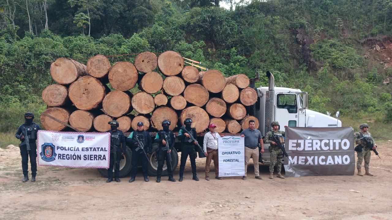 Atoyac, Gro., (13 Febrero, 2026).- Como parte de un operativo forestal contra la tala clandestina y la deforestación, elementos de la Policía Estatal y del Ejército Mexicano en apoyo a la Procuraduría Federal de Protección al Ambiente (PROFEPA), aseguraron material forestal en el municipio de Atoyac de Álvarez.