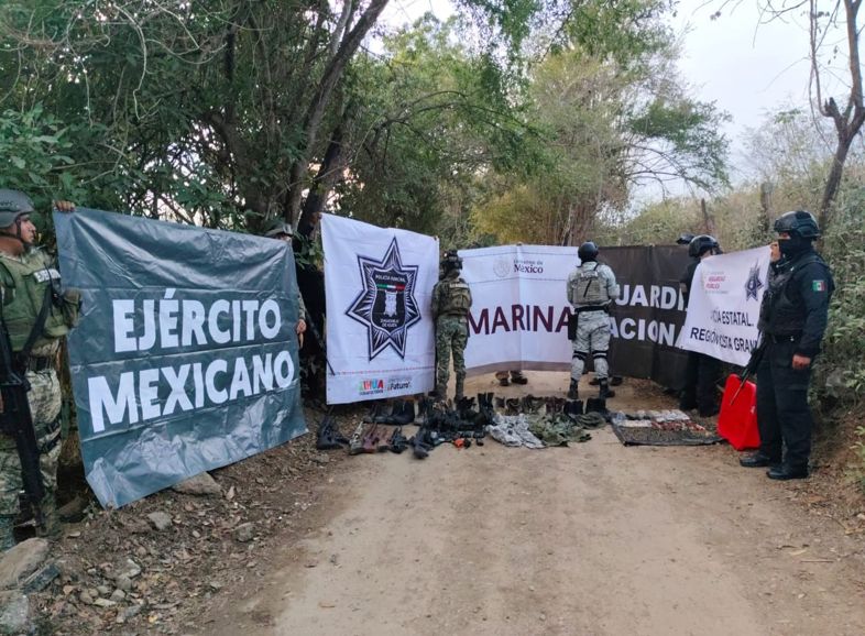 Zihuatanejo, Gro., (14 Enero, 2026).- En una acción interinstitucional en materia de seguridad, autoridades de los tres niveles de gobierno aseguraron armamento y equipo táctico en la región Costa Grande.