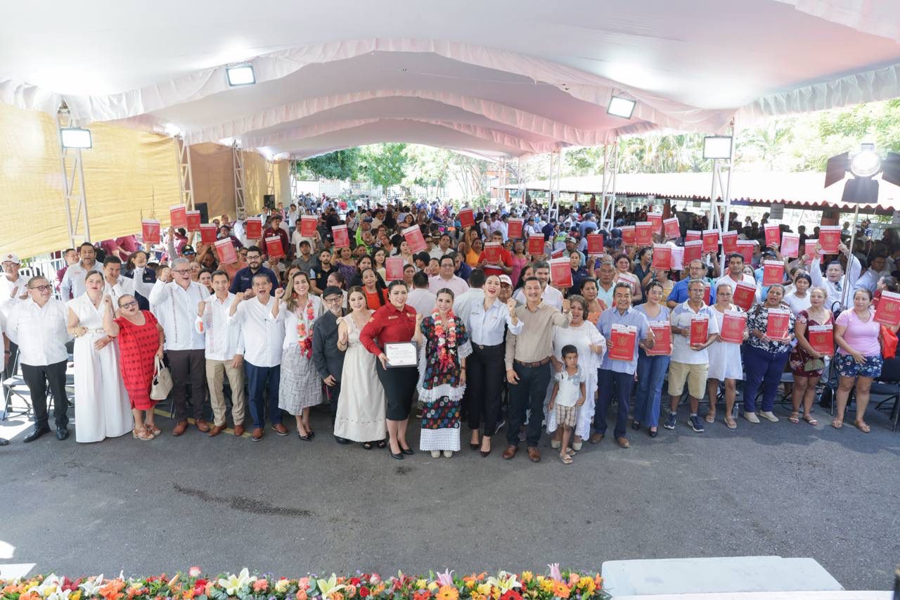 “Hoy me da mucho gusto poder acompañarlos para entregar más de 500 títulos de propiedad; tener una escritura nos da tranquilidad, nos da seguridad y nos da certeza jurídica. Esto es algo muy importante para todas las familias y sobre todo para el cuidado de su patrimonio; cada uno de estos títulos son el reconocimiento de un esfuerzo de muchos años y de mucho sacrificio”, expresó la mandataria ante los beneficiarios.