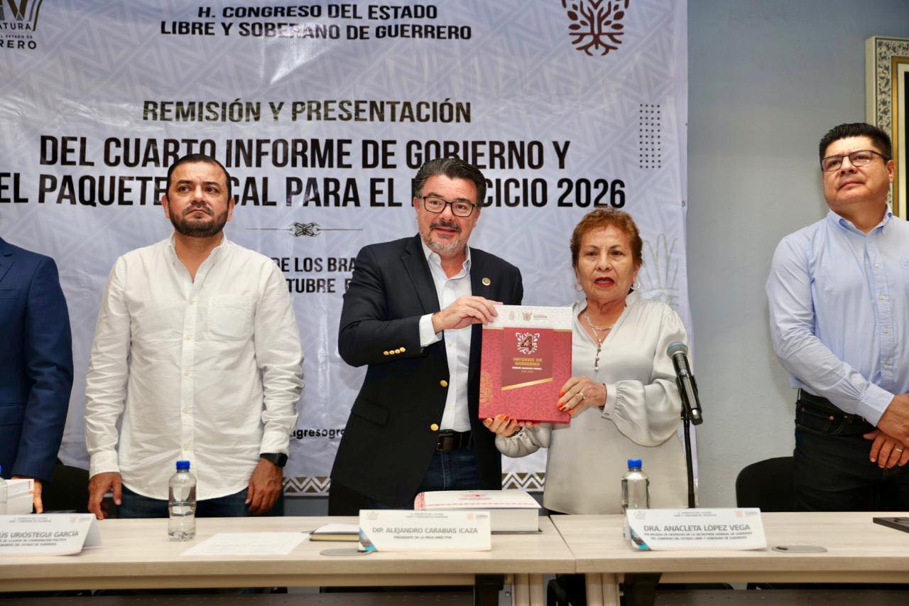 Cumpliendo en tiempo y forma con el artículo 73 de la Constitución Política del Estado Libre y Soberano de Guerrero, a nombre de la titular del Poder Ejecutivo, la encargada de despacho de la Secretaría General de Gobierno, Anacleta López Vega, hizo la entrega del informe por escrito a los diputados que integran la Mesa Directiva y la Junta de Coordinación Política (Jucopo) del Congreso local.