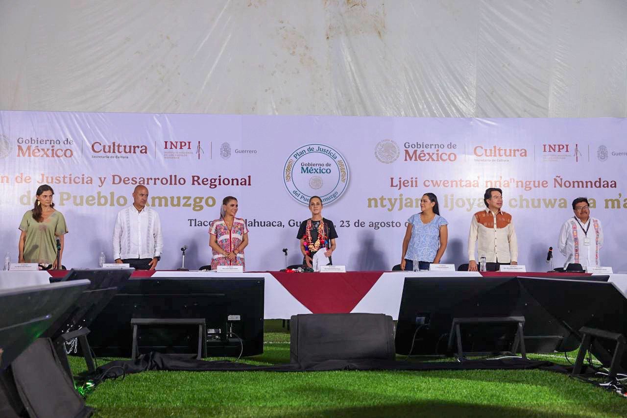 Tlacoachistlahuaca, Gro., (Agosto 23, 2025).- “Estamos convencidos de que la justicia social empieza por saldar la deuda con nuestros pueblos originarios indígenas y afromexicanos”, señaló la gobernadora Evelyn Salgado Pineda al acompañar a la presidente de México, Claudia Sheinbaum Pardo, a la instalación del Plan de Justicia y Desarrollo Regional del Pueblo Amuzgo, de Guerrero y Oaxaca.