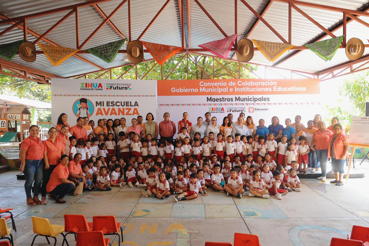 Tapia Castro reconoció además la labor y compromiso de los maestros municipales, subrayando que, a pesar de no percibir el mismo salario que los docentes federales o estatales, desempeñan un papel fundamental en la formación de la niñez y juventud zihuatanejense.