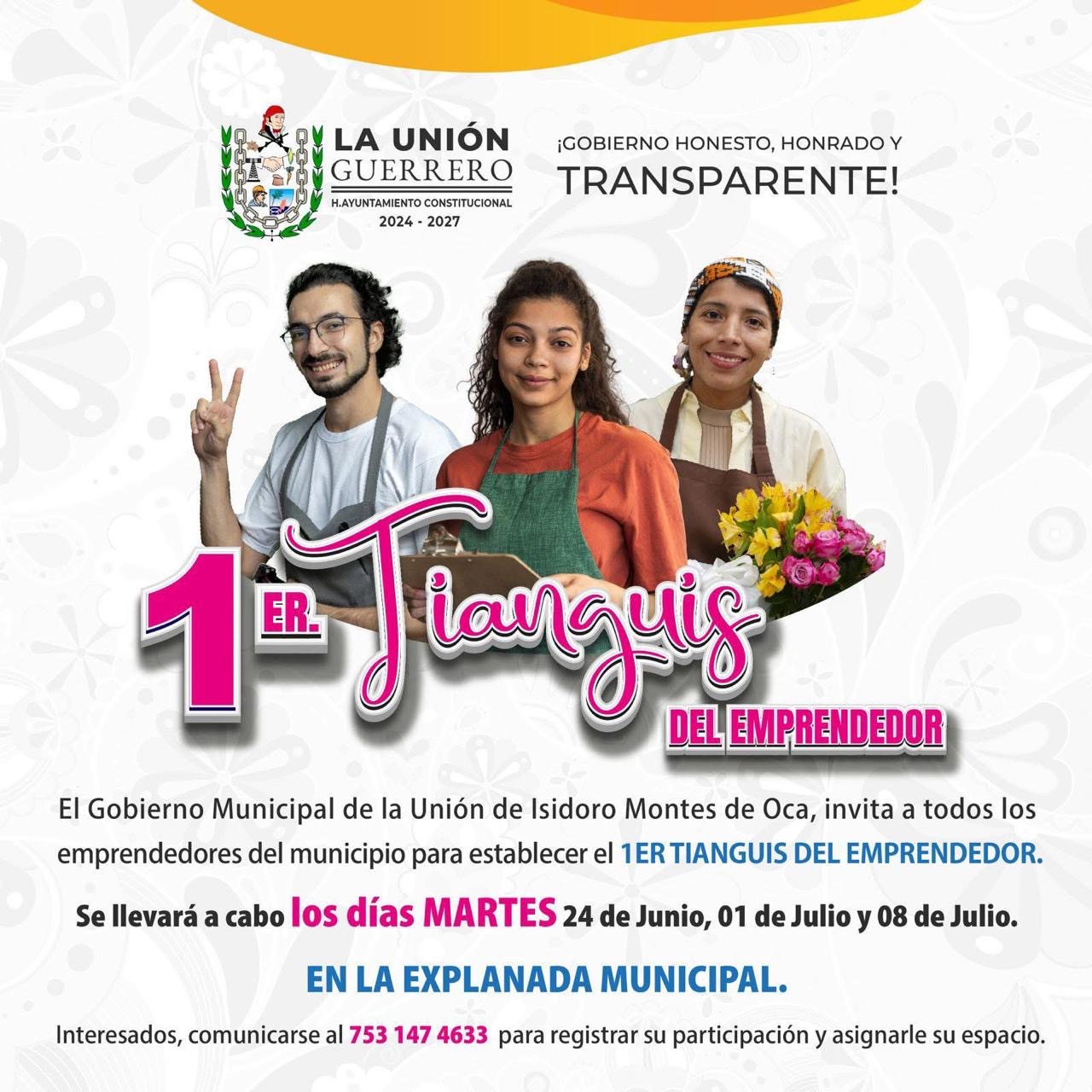 La Unión, Gro., (Junio 18, 2025).– El presidente municipal, José Francisco Suazo Espino, lanzó una invitación abierta a todos los emprendedores del municipio para participar en el Primer Tianguis del Emprendedor, un evento que busca fortalecer la economía local y brindar un espacio de promoción a los productos y servicios hechos por manos unionenses.