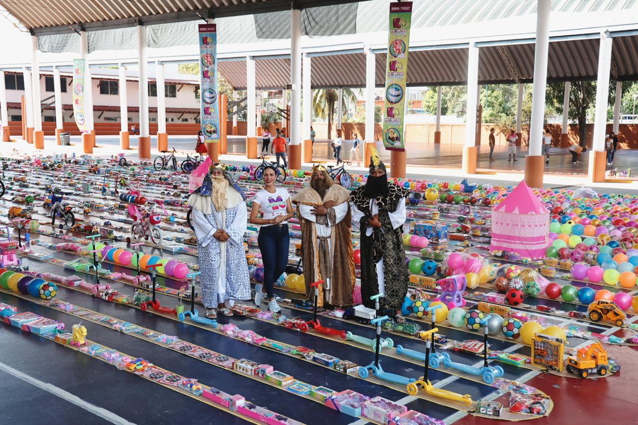 En una jornada que inició a las 8 de la mañana de este sábado 3 de enero y concluyó a las 5 de la tarde, se rebasó la meta lograda el año pasado de 2.1 kilómetros de juguetes, alcanzando en esta ocasión 2.5 kilómetros, con más de 6 mil juguetes recaudados.