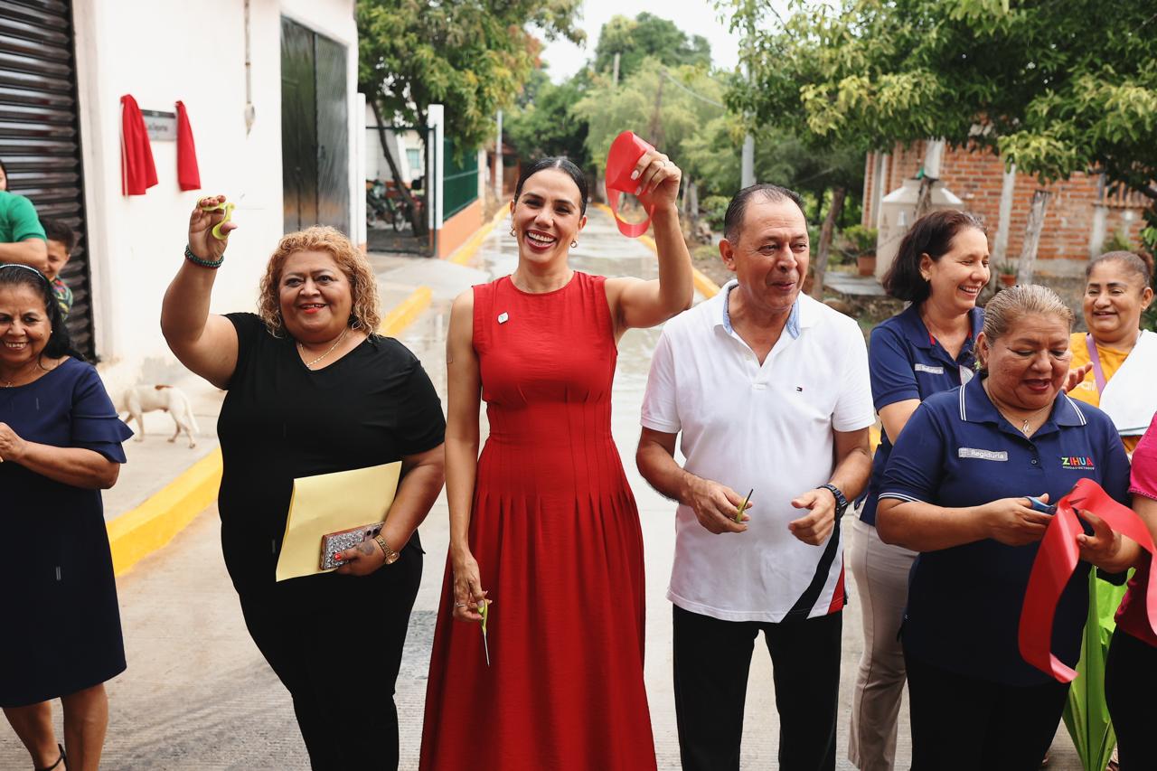 Zihuatanejo, Gro., (Octubre 2, 2025).- Tras recibir en Acapulco el Distintivo Nacional de Calidad Turística “Diamante” otorgado por Fonatur a Zihuatanejo, la presidente municipal Lizette Tapia Castro acudió a la comunidad de Pantla para entregar la pavimentación de la calle de acceso al Club de la Tercera Edad, operado por el DIF Municipal, así como la obra de electrificación en la colonia Los Llanitos.