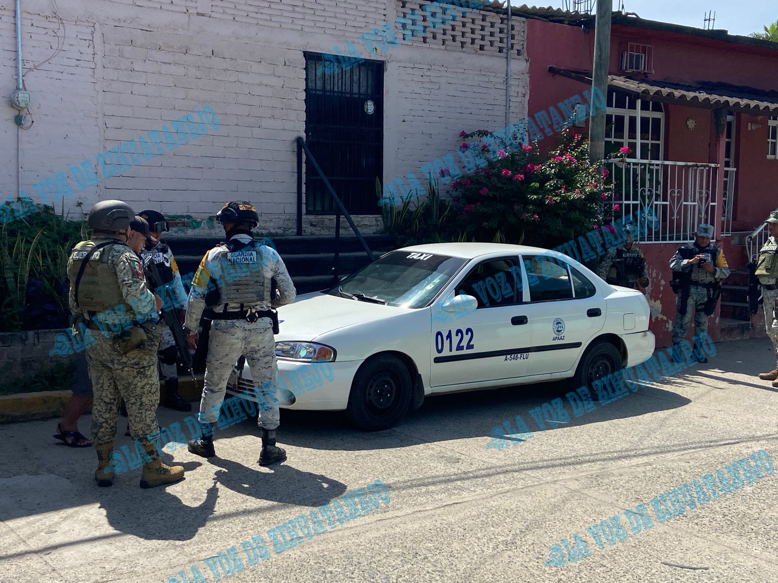 Zihuatanejo, Gro., (Octubre 19, 2025).- Elementos de la Guardia Nacional resguardaron el taxi con número económico 122 de la agrupación APAAZ, que anoche fue reportado como robado por sujetos armados que asaltaron al conductor y a quien abandonaron rumbo a playa Larga.