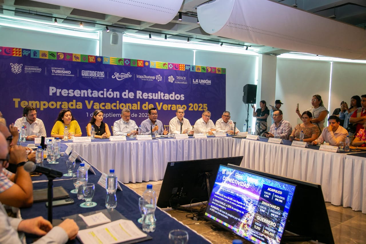 Durante la conferencia se detalló que Acapulco reportó más de 6 mil 200 millones de pesos en derrama económica, con un promedio de ocupación del 65% y la visita de 782 mil 102 turistas, en Ixtapa-Zihuatanejo se alcanzó una derrama superior a 3 mil 656 millones de pesos, con 75% de ocupación hotelera y 371 mil 937 visitantes, mientras que en Taxco de Alarcón se registraron 626 millones 760 mil pesos, con 40% de ocupación y la llegada de 106 mil 946 turistas, en tanto que en La Unión se reportó 591 millones 754 mil pesos, con una ocupación de 66% y la presencia de 41 mil 231 visitantes.