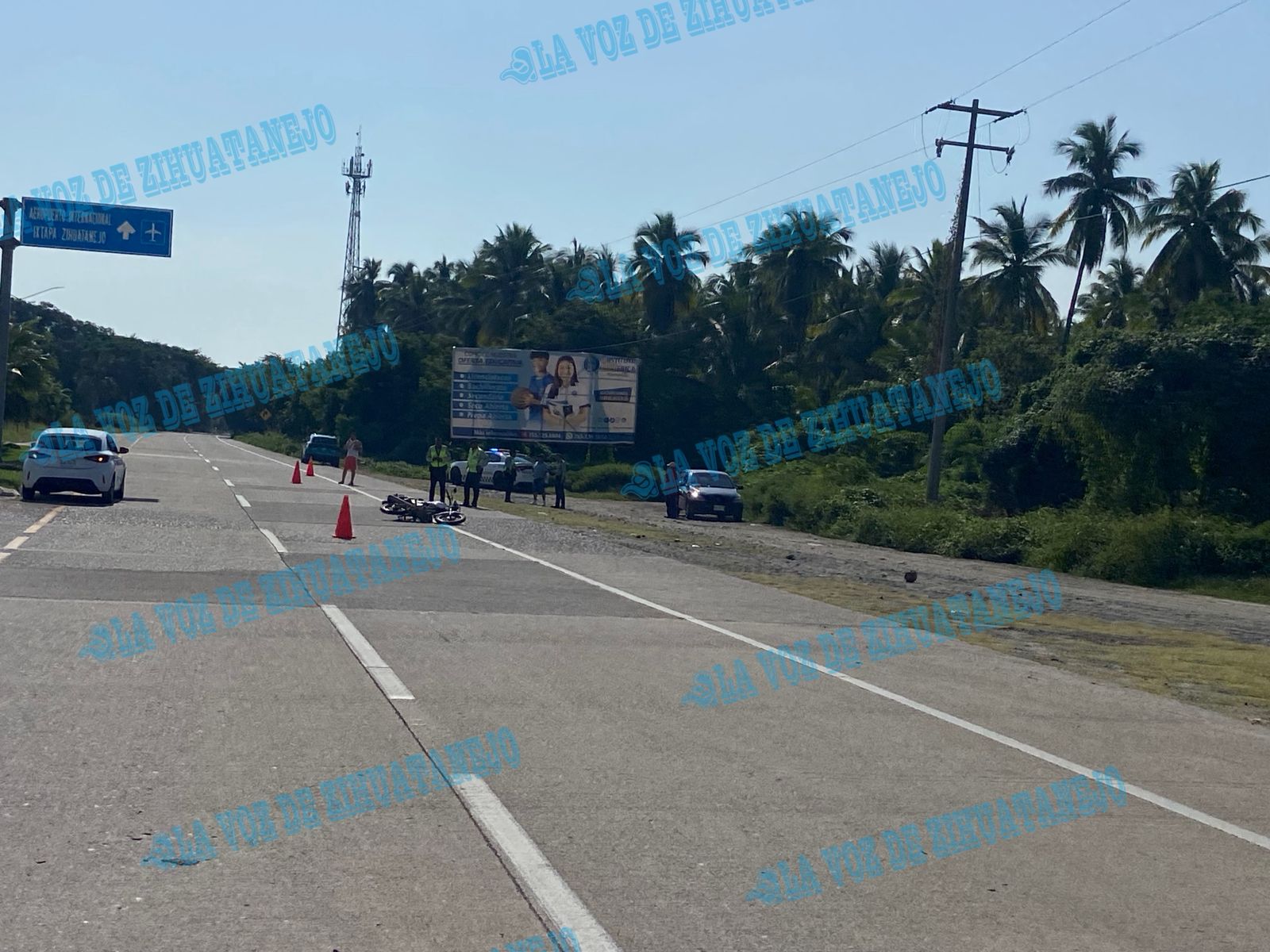En el peligroso cruce de playa Larga, hacia el Aeropuerto y El Coacoyul, quedaron tanto la unidad automotriz como la motocicleta, en espera de la intervención de la compañía aseguradora, para el correspondiente pago de los daños materiales y la atención al herido; en tanto el tráfico vehicular en la carretera federal fue controlado por personal de la Guardia Nacional.