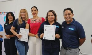 Zihuatanejo, Gro., (Octubre 19, 2025).- La presidente Lizette Tapia Castro encabezó la entrega de la certificación ECO153 a 20 trabajadoras de la...