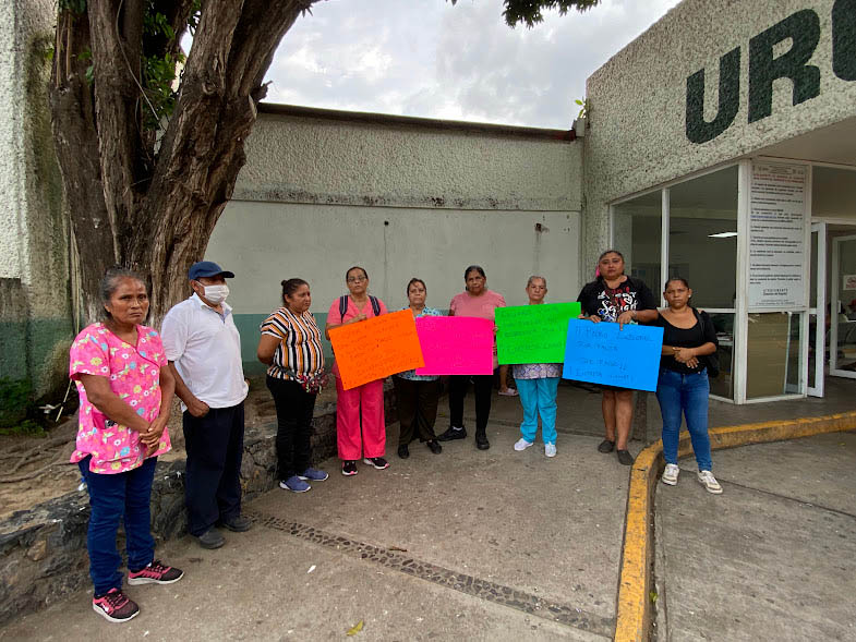 Zihuatanejo, Gro., (Noviembre 3, 2025).- Trabajadores del área de Intendencia del Hospital General del IMSS Bienestar “Bernardo Sepúlveda”, contratados mediante la empresa LAMAP, se manifestaron de manera pacífica afuera de las instalaciones, por la zona de Urgencias, para exigir el pago de sus quincenas; afirman no contar con prestaciones extraordinarias, excepto el día de descanso, por lo que sus ingresos dependen únicamente del concepto de sueldos y con frecuencia llegan con retrasos.