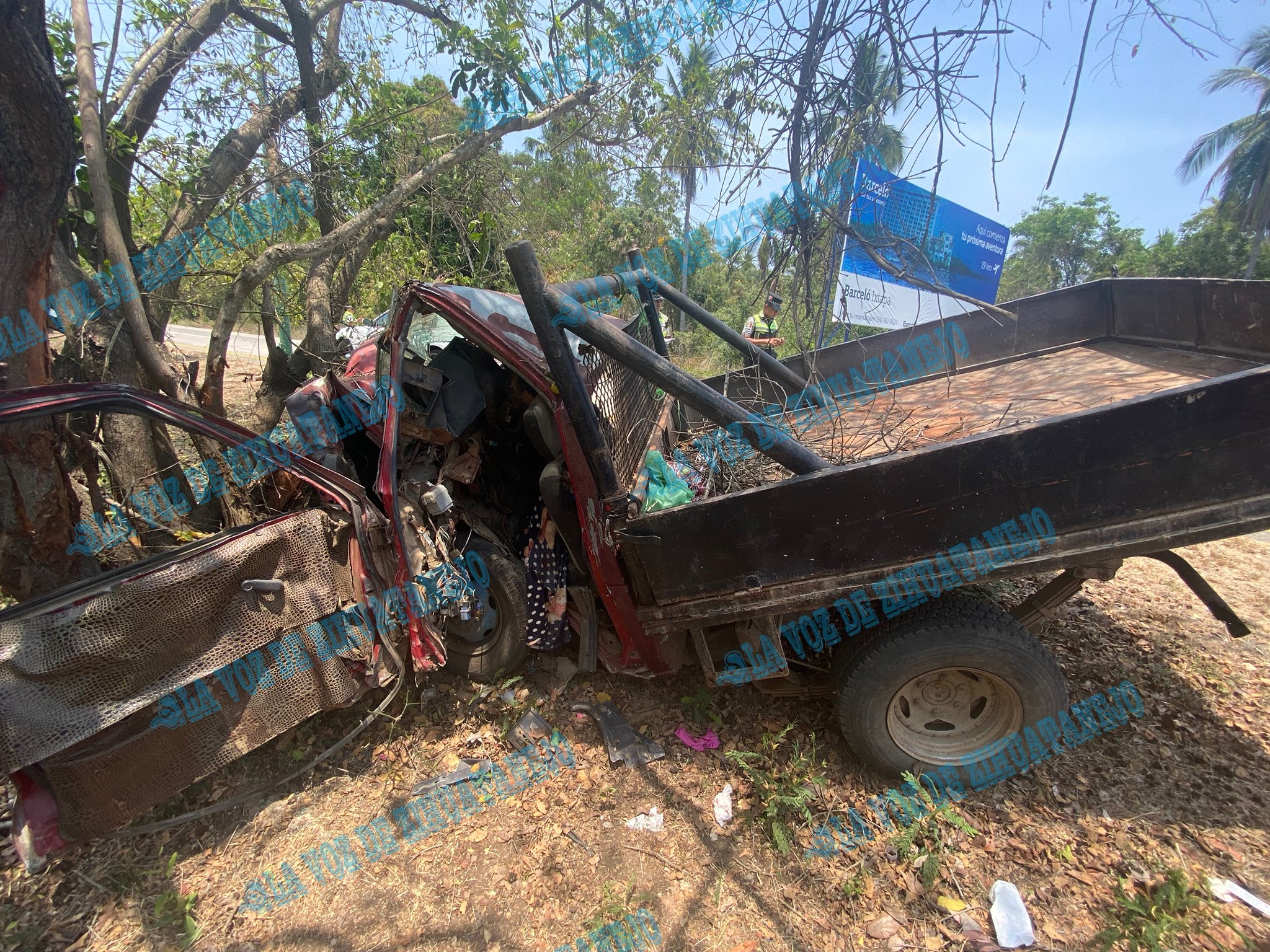 Zihuatanejo, Gro., (16 Abril, 2026).- Fuerte accidente vehicular ocurrió a las 12:25 horas en el bulevar Zihuatanejo-Aeropuerto, luego de que un hombre identificado como Juan Ángel, de oficio albañil, perdió el control de la camioneta Nissan cuando se dirigía en sentido al puerto de Zihuatanejo y se impactó contra un árbol.