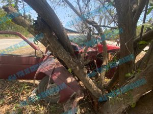 Pierde control de la camioneta y se estrella fuertemente contra un árbol