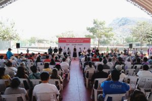 Zihuatanejo, Gro., (26 Marzo, 2026).- La presidente Lizette Tapia Castro, acompañada de integrantes del cabildo, sostuvo este jueves un emotivo encuentro en las canchas techadas de la Unidad Deportiva Municipal con 100 habitantes de colonias y comunidades de Zihuatanejo, a quienes les hizo entrega de aparatos auditivos, uno para cada beneficiario, como una primera acción del programa “Escuchar Juntos”, que se desarrolla a través del DIF Municipal.