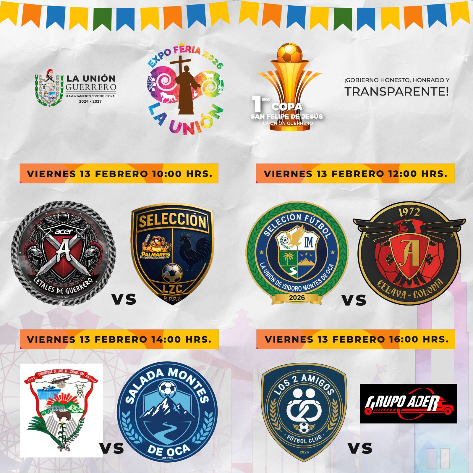 La Unión, Gro., (12 Febrero, 2026).- La emoción y la pasión por el futbol se vivirán al máximo este fin de semana en la cabecera municipal de La Unión, donde se llevará a cabo un torneo corto como parte de las actividades deportivas de la Expo Feria San Felipe de Jesús, impulsada por el presidente municipal José Francisco Suazo Espino.