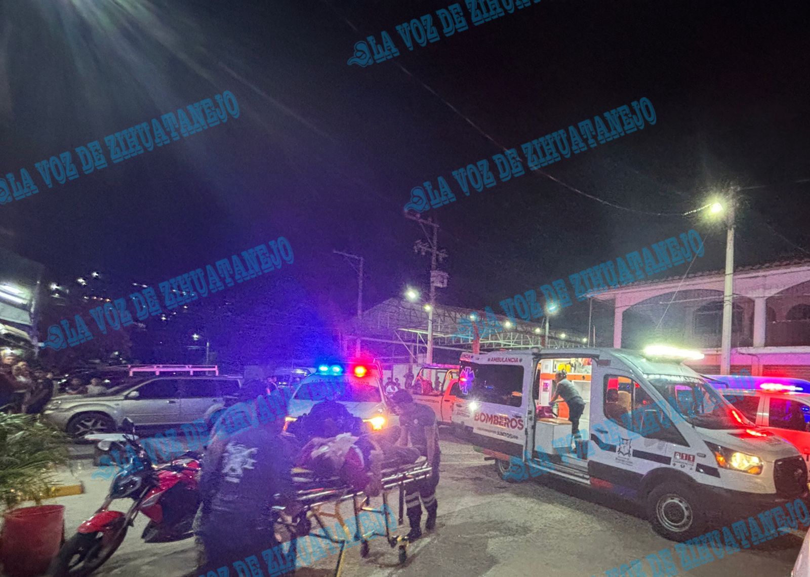 Zihuatanejo, Gro., (Octubre 18, 2025).- Alrededor de las 9 de la noche de hoy sábado reportaron detonaciones de arma de fuego en inmediaciones del Infonavit La Noria, por la cancha de basquetbol, respondiendo el llamado uniformados de Seguridad Pública que localizaron a un hombre herido y de inmediato solicitaron el apoyo de paramédicos municipales.