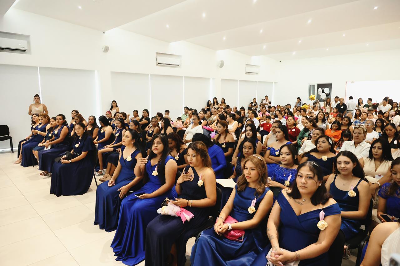 En esta ocasión se graduaron 34 alumnas de los talleres de cultora de belleza, corte y confección, manualidades y zumba. Las participantes cumplieron con los dos años que comprenden los cursos, y en el caso de quienes se capacitaron en manualidades y zumba, recibieron su reconocimiento correspondiente.