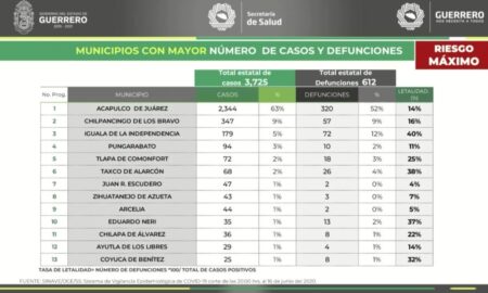 Eliuth Espinoza Zihuatanejo, Gro., (Junio 17, 2020).- Zihuatanejo es el octavo municipio con mayor número de casos y defunciones en Guerrero, de...