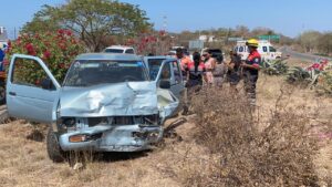 El siniestro vial se produjo después de las 11 horas del martes, chocó una camioneta Mazda CX-5, blanca con placas de Querétaro y una camioneta Nissan pick up, gris, con placas del vecino estado de Michoacán.