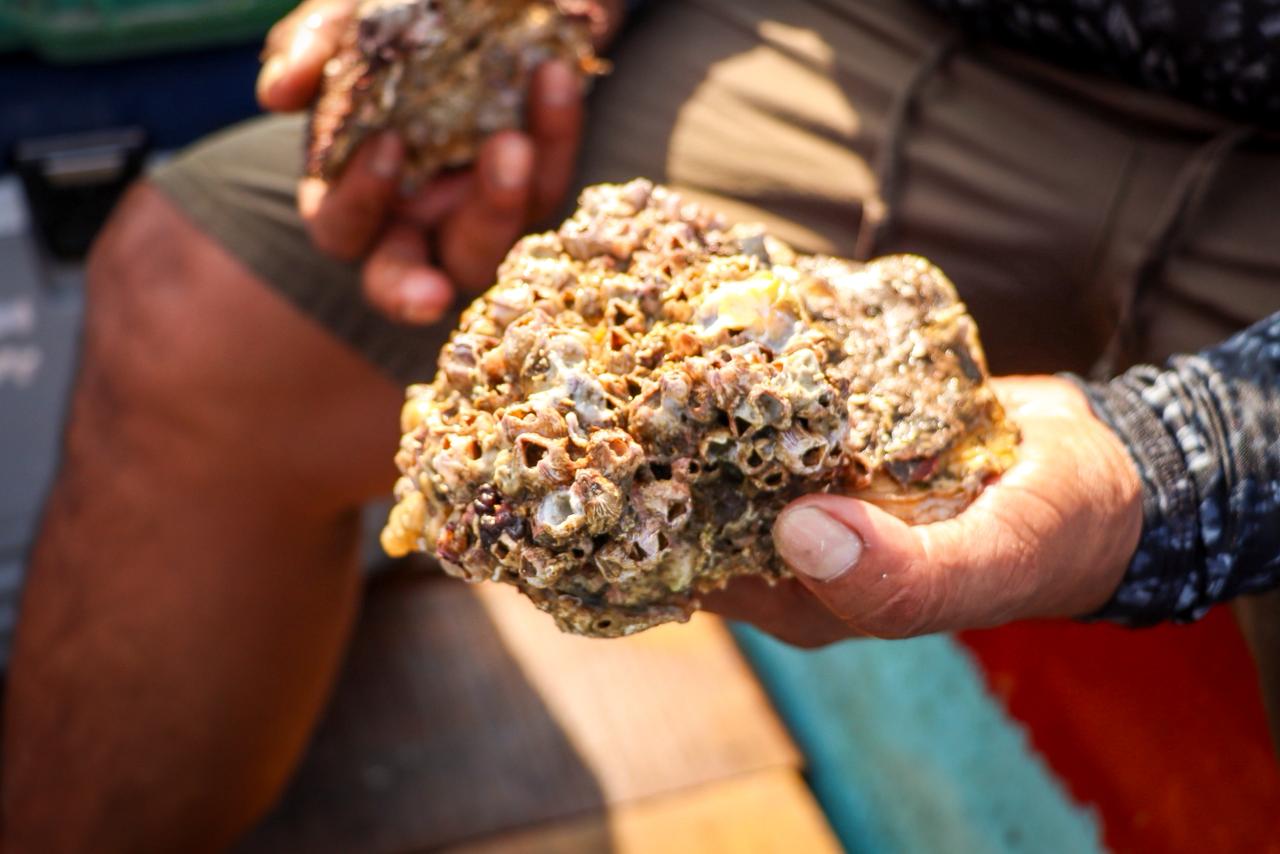 Acapulco, Gro., (Diciembre 8, 2025).- El director general de Pesca y Acuacultura, Heber de Jesús Sánchez Paredes, y el presidente de la Unión de Federaciones y Sociedades Cooperativas de Buzos y Pescadores en el Estado de Guerrero, Orlando Peña Damián, llevaron a cabo acciones de repoblamiento de ostión de roca en la bahía de Acapulco, a fin de busca proteger y conservar la especie, cuya presencia se ha visto afectada tras los daños provocados por los huracanes Otis y John.
