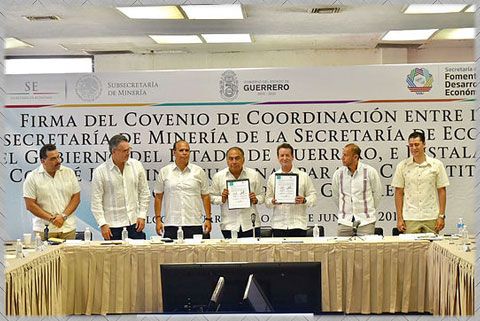 Acapulco, Gro., (Junio 20, 2018).- El gobernador Héctor Astudillo Flores se reunió con el subsecretario de minería de la Secretaría de Economía, Mario Cantú Suárez, con quien firmó un convenio de coordinación en minería y el Gobierno de Guerrero, así como la instalación del Comité Interinstitucional para la Competitividad del Sector Minero del estado.Astudillo Flores dijo que esto impulsará más de todo lo que se ha intentado hacer en torno a la minería, “pues Guerrero no solamente es turismo, Guerrero no es solamente mango, coco, en Guerrero la minería también sobresale como activo de la economía”, da un gran impulso al sector económico gracias a la inversiones de las principales empresas de este rubro, principalmente en la zonas donde se encuentran asentadas las mineras.Destacó que en Guerrero en la zonas de minerías se tiene un aproximando de 5 mil empleos permanentes y 30 mil indirectos, destacando que de acuerdo a la visión del pasado se tiene como una actividad perjudicial, pero en el presente se tienen las regulaciones que se han venido dando.Dijo también que Guerrero logró ubicarse del noveno al cuarto lugar en producción de oro a nivel nacional, “el gobernador es aliado del turismo, el gobernador es aliado de la producción en el campo; el gobernador es aliado de la minería, también de todos aquellos que generen empleo e inversiones”, subrayó.