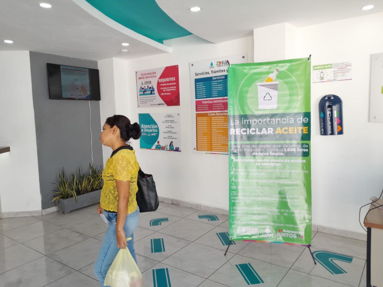 Zihuatanejo, Gro., (Enero 25, 2023).- Como parte de las actividades encaminadas a sensibilizar a la población sobre la cultura del reciclaje y en el marco del Día Internacional de la Educación Ambiental, la Comisión de Agua Potable y Alcantarillado de Zihuatanejo (CAPAZ) puso en operación en sus oficinas centrales un centro de acopio de aceite doméstico, que se suma al de pilas ya existente.