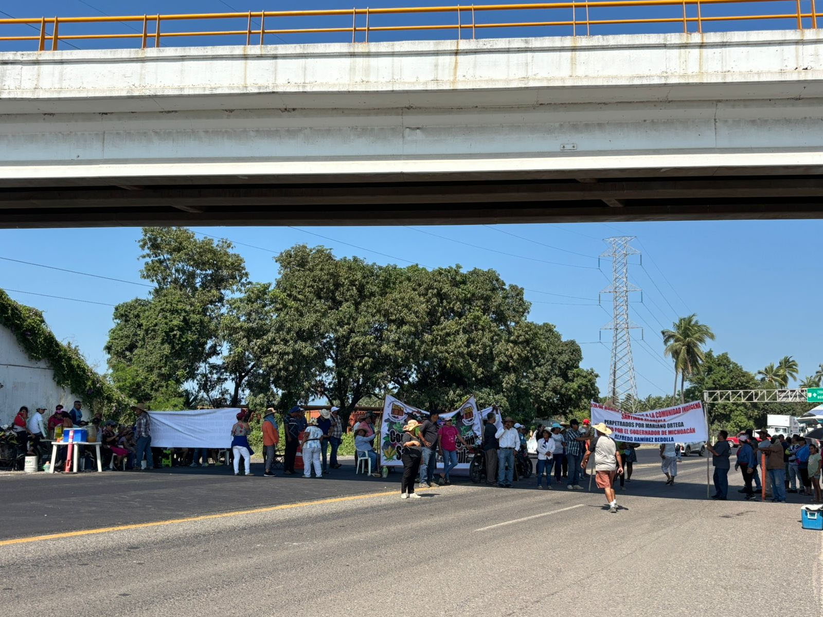 Alrededor del mediodía, un grupo de vecinos de la comunidad indígena “Santiago Zacatula” bloquearon la importante vía carretera, demandando la presencia de autoridades competentes para resolver su pliego petitorio; destacan los señalamientos de lo que consideran ha sido un robo de sus tierras, por parte de Mariano Ortega, con el respaldo del gobernador michoacano Alfredo Ramírez Bedolla.