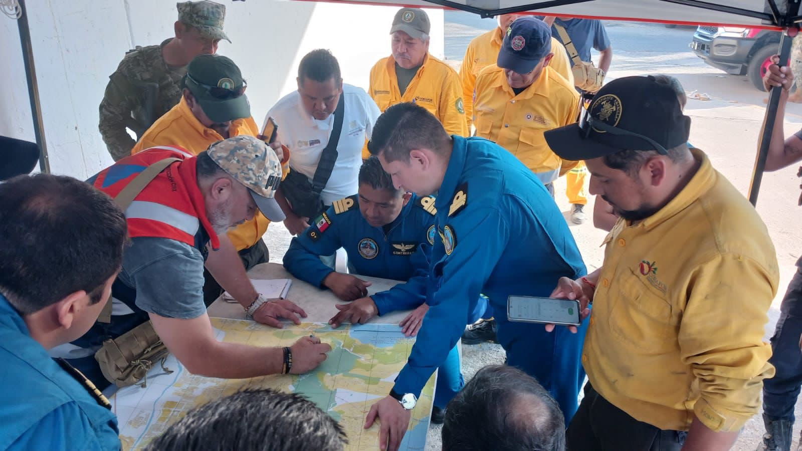 En el control y combate del siniestro, participan elementos de la Secretaría de Gestión Integral de Riesgos y Protección Civil, Secretaría de Marina, Policía Estatal Ecológica, Comisión Nacional Forestal, Secretaría de la Defensa Nacional, Bomberos y Protección Civil Municipal.