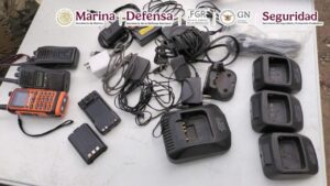 Posteriormente, se ubicó y desmanteló un campamento clandestino donde se encontraron vehículos, así como armamento, municiones, ropa, calzado táctico y material diverso.