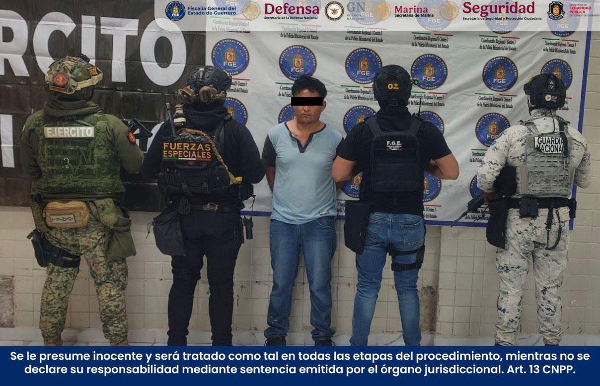 Chilpancingo, Gro., (Diciembre 8, 2025).- La Fiscalía General del Estado de Guerrero informa que, en acciones conjuntas con la Secretaría de la Defensa Nacional, Guardia Nacional, Secretaría de Seguridad y Protección Ciudadana y Policía Estatal, se logró la detención en flagrancia de un hombre identificado como Eduardo “N”, en el municipio de Chilpancingo de los Bravo, Guerrero.