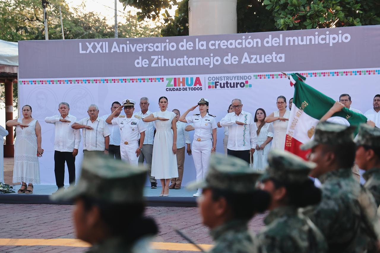 Zihuatanejo, Gro., (Diciembre 23, 2025).- Al cumplirse este martes 23 de diciembre 72 años de la erección de Zihuatanejo de Azueta como municipio, la presidente municipal Lizette Tapia Castro encabezó los festejos por este hecho histórico que colocó a este lugar en la historia de nuestro estado y de nuestro país.
