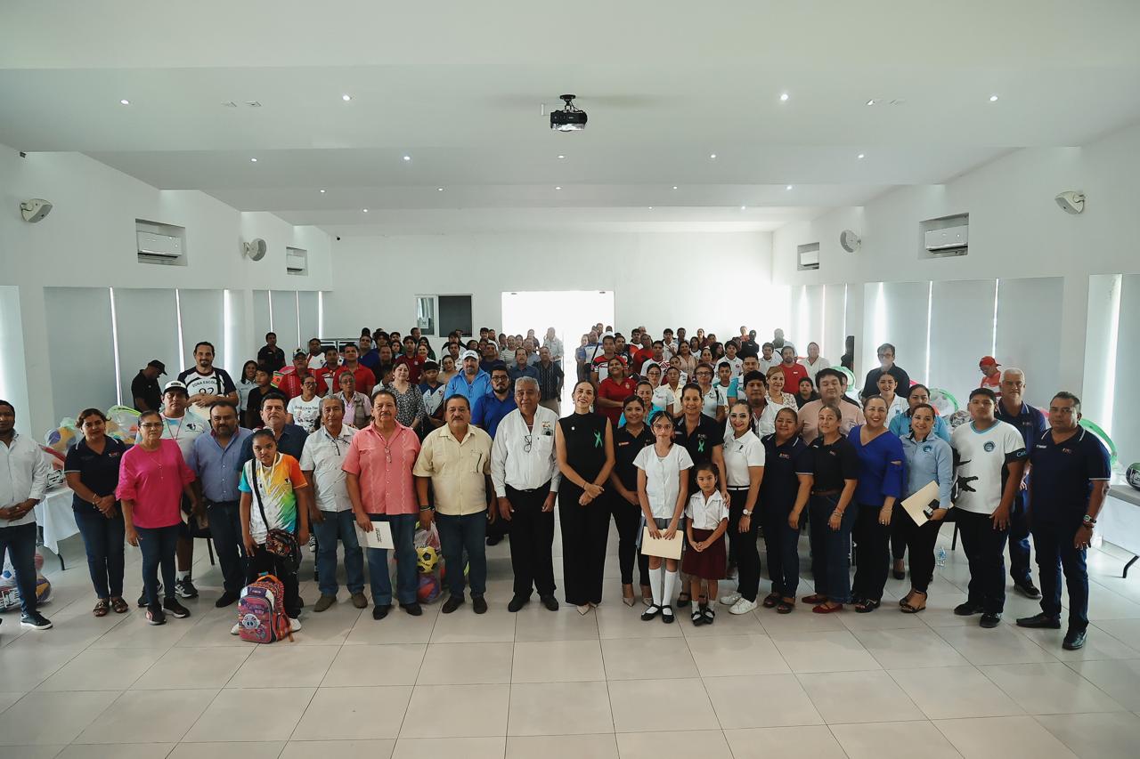 Zihuatanejo, Gro., (Diciembre 10, 2025).- Continuando con su plan de apoyo al sector educativo, la presidente Lizette Tapia Castro, a través de la Dirección de Educación a cargo de la maestra Ada Ninivet Galeana González, realizó la entrega de reconocimientos y material deportivo consistente en accesorios para diferentes disciplinas, además de balones para voleibol y basquetbol que son utilizados en las clases de educación física.