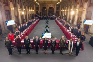 Durante la sesión, se presentó un balance de los primeros 14 meses del Gobierno de México, destacando avances significativos en materia de seguridad, donde estuvieron presentes los 32 gobernadores del país.