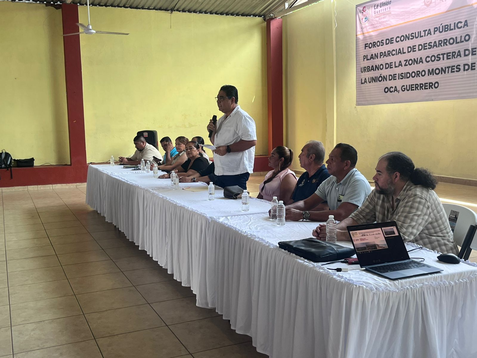 La Unión, Gro., (Noviembre 15, 2025).- Con el firme propósito de construir un desarrollo urbano ordenado y sustentable, el presidente municipal de La Unión, José Francisco Suazo Espino, encabezó el Foro de Consulta Pública para el Plan de Desarrollo Urbano de la zona costera de Isidoro Montes de Oca, un espacio abierto para que habitantes, sectores productivos y representantes sociales aportaran sus ideas y necesidades.