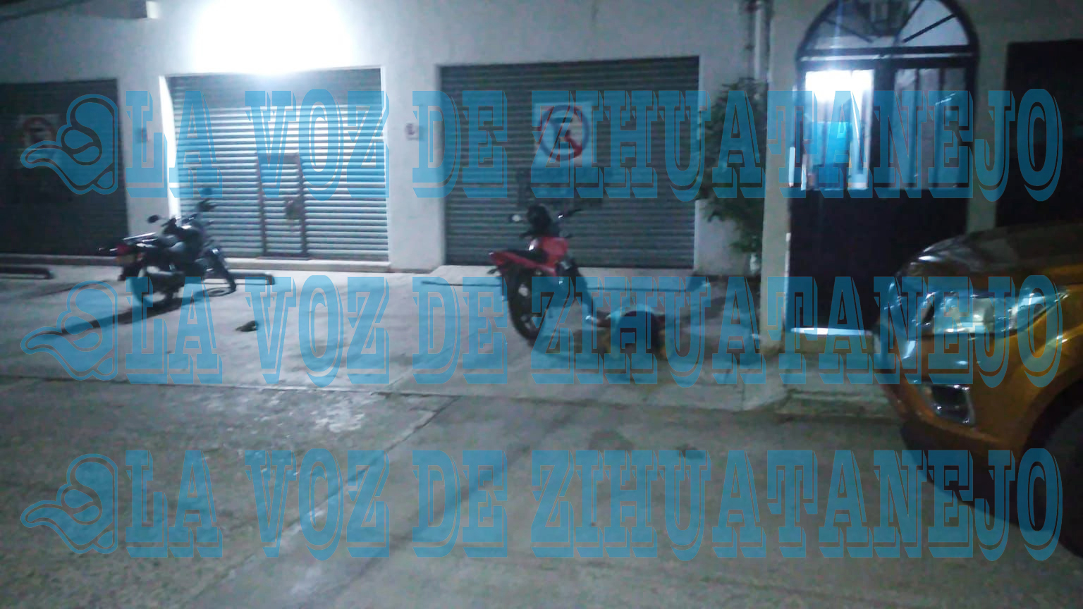 Zihuatanejo, Gro., (Septiembre 9, 2023).- La tarde noche de este sábado fue ultimado a balazos un motociclista en el acceso a la colonia Los Amuzgos, cerca de una taquería y una farmacia, al llegar los cuerpos de rescate ya no presentaba signos vitales.