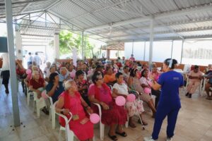 Más tarde, en el Centro de Desarrollo Comunitario, la enfermera Lorena Sánchez Gómez impartió la plática “Cuidarte es Amarte” dirigida a mujeres adultas mayores, y se entregaron despensas alimenticias por parte del DIF Zihuatanejo.