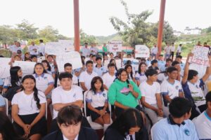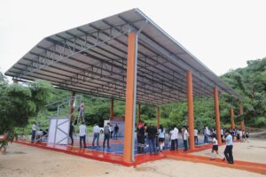 Zihuatanejo, Gro., (Octubre 6, 2025).- En colaboración con la asociación Por los Niños de Zihuatanejo, que preside Karol Romain, la presidente municipal Lizette Tapia Castro hizo entrega de una cancha techada al CETMAR 34, ubicado en la zona de Riscalillo.