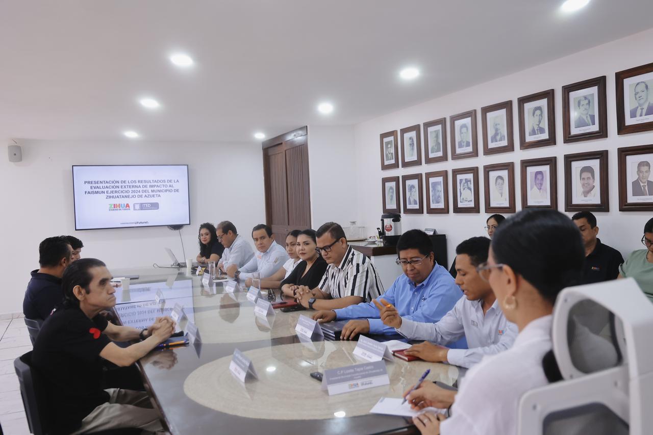 Zihuatanejo, Gro., (Diciembre 14, 2025).- Dicha evaluación se llevó a cabo bajo el formato del INEGI, el cual verifica en qué se invirtieron los recursos del Fondo de Aportaciones para la Infraestructura Social Municipal (antes Ramo 33), que únicamente pueden destinarse a rubros como agua potable, alcantarillado, drenaje, infraestructura básica educativa, sector salud, mejoramiento de vivienda y urbanización.
