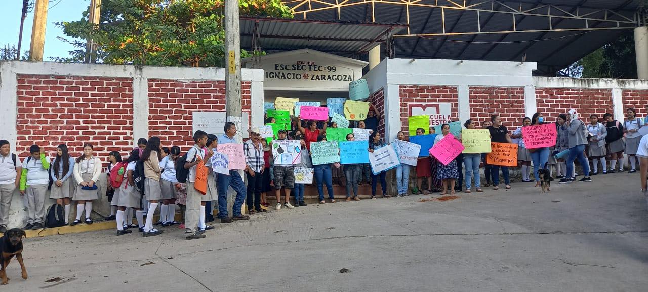 Zihuatanejo, Gro., (Diciembre 1, 2025).- La mañana de este lunes, padres de familia de al menos un centenar de estudiantes de la Escuela Secundaria Técnica 99 “Ignacio Zaragoza”, ubicada en la comunidad serrana de Vallecitos de Zaragoza, decidieron tomar las instalaciones para exigir la asignación inmediata de maestros y personal de intendencia, ante lo que califican como “años de abandono” por parte de la Secretaría de Educación Guerrero.
