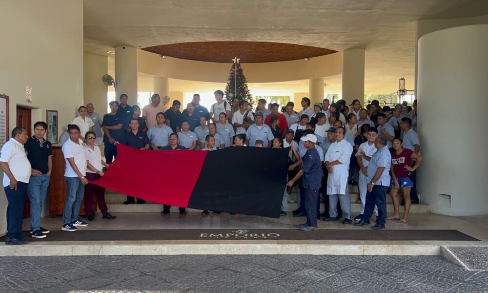 Zihuatanejo, Gro., (Diciembre 7, 2025).- Empleados del Hotel Emporio Ixtapa afiliados a la Sección...