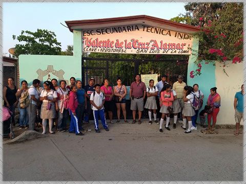 Alberto SolísSan Luis de la Loma, Gro., (Marzo 12, 2018).- Madres y padres de familia de la escuela secundaria técnica Valente de la Cruz Alamar, ubicada en este poblado del municipio de Tecpan de Galeana, exigen un maestro para que imparta la materia de inglés, por lo que este lunes cerraron el centro escolar y evitaron que hubiera labores, para obligar a las autoridades educativas a dialogar.La protesta fue encabezada por el comité de padres de familia que preside la señora Marina Abarca López, quien explicó que desde el mes de octubre del año pasado no cuentan con el profesor de esa materia porque el que estaba ya se ha jubilado.Los padres de familias de la escuela secundaria desde las 7:00 horas cerraron la escuela por la falta del maestro, por lo que más de 150 alumnos se quedaron afuera de la institución escolar, junto con sus maestros y con el director del plantel.Dijeron que en caso de no obtener una respuesta satisfactoria de las autoridades educativas, van a cumplir su amenaza de cerrar la carretera federal Acapulco-Zihuatanejo, a la altura del puente que une a San Luis San Pedro con San Luis de la Loma.