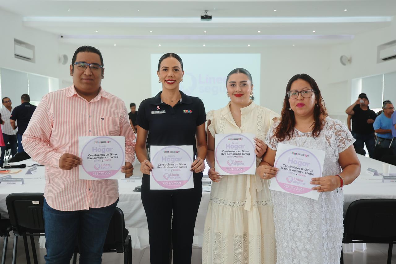 Zihuatanejo, Gro., (Octubre 8, 2025).- La presidente Lizette Tapia Castro, acompañada por integrantes del cabildo, autoridades estatales y del sector educativo, anunció en conferencia de prensa la implementación del programa Línea Segura, una nueva estrategia impulsada a través del DIF Municipal que permitirá realizar denuncias telefónicas y anónimas sobre casos de violencia contra niños y adolescentes de Zihuatanejo.