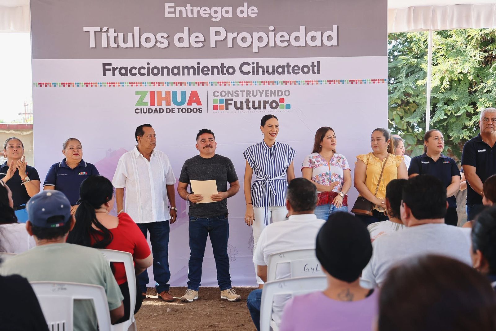 Zihuatanejo, Gro., (Diciembre 7, 2025).- En un acto de gran relevancia para los habitantes de la unidad habitacional Cihuateotl, en la comunidad de San José Ixtapa, la presidente Lizette Tapia Castro acudió al lugar para hacer entrega de los títulos de propiedad, brindando certeza jurídica a las familias beneficiadas.