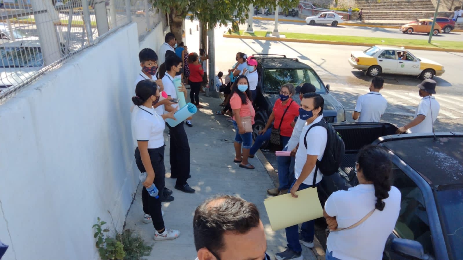 Acapulco, Gro., (Noviembre 18, 2021).- Cerca de las 10 de la mañana un grupo de 20 jóvenes estudiantes del Colegio de Bachilleres, provenientes de la colonia La Máquina, arribaron a las escalinatas del ayuntamiento de Acapulco, para exigir una reunión con la alcaldesa Abelina López Rodríguez.