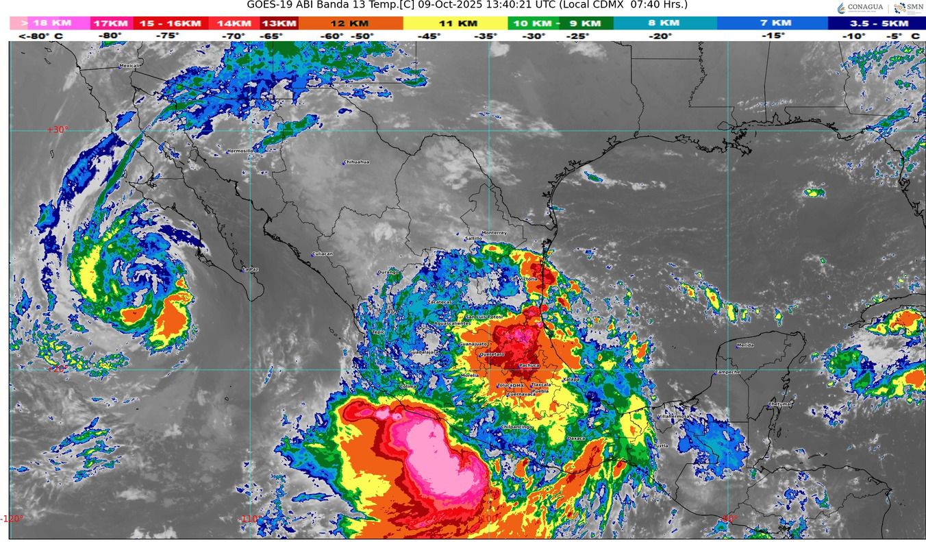 Chilpancingo, Gro., (Octubre 9, 2025).- La Secretaría de Gestión Integral de Riesgos y Protección Civil informó que este jueves será un día parcialmente nublado, con la probabilidad de lluvias de ligeras a moderadas y ocasionalmente fuertes de manera intermitente, esto debido a varios sistemas meteorológicos que afectan al territorio nacional.
