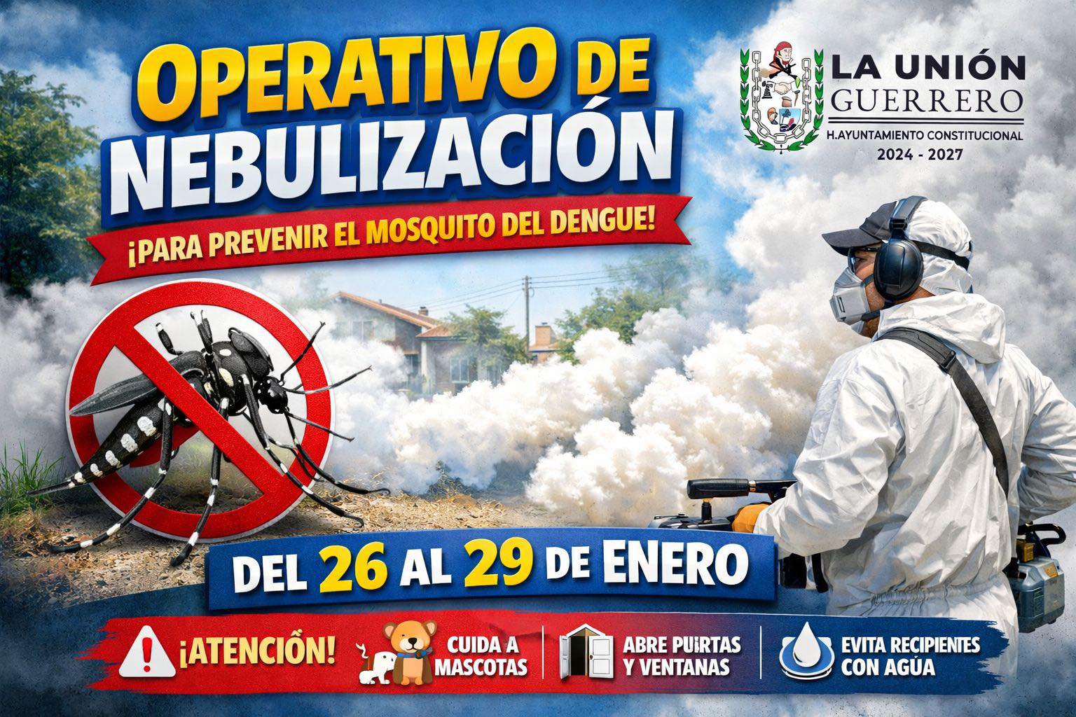 Como parte de esta estrategia, se pondrá en marcha un Operativo de Nebulización Espacial, dirigido a reducir la proliferación del mosquito Aedes aegypti, transmisor de enfermedades como dengue, chikungunya y zika, padecimientos que representan un riesgo para la población, especialmente en temporada de calor.