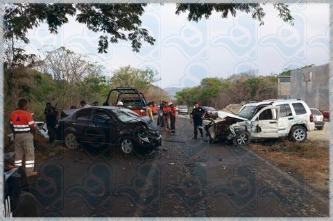 El EquipoZihuatanejo, Gro., (Junio 3, 2018).- Un taxista perdió la vida en un encontronazo vehicular que se registró en la carretera Zihuatanejo-Lázaro Cárdenas, cerca del poblado El Posquelite, en la cual participaron tres vehículos.De acuerdo a la información obtenida, fue a las 08 horas de este domingo, que una camioneta Jeep Liberty, blanca, el taxi 0392 y un Chevrolet Aveo, gris; chocaron sobre la mencionada carretera.La Jeep era conducida por el médico Jacobo Dimas quien resultó con lesiones menores, fue trasladado al hospital regional del Seguro Social en una ambulancia de esta misma institución, su estado de salud no es grave.El Aveo era conducido por Miguel Héctor Flores Cruz quien resultó con lesiones menores, pero su hijo Miguel “N”, de 5 años de edad, su suegra María Elena Peñaloza, de 55 años de edad y su cuñada Mónica Ortega, de 30 años de edad, necesitaron que los trasladaran en la ambulancia de Bomberos Municipal hacia el hospital del Seguro Social.Paramédicos de Protección Civil del Estado verificaron que el conductor del taxi Raymundo Moreno Polanco, de 55 años de edad, ya no presentaba signos vitales pero sobrevivió su pasajero Isaías Anzo, de 18 años de edad, a quien trasladaron rápidamente al Hospital General ya que estaba fracturado de una pierna.En un principio el transportista Rey Mundo, pese a que estaba prensado se movía y se comunicaba hasta que finalmente falleció por las graves lesiones que se produjo.El área fue acordonada por elementos de la Policía Federal, Municipal y Estatal en lo que agentes de la Fiscalía General del Estado realizaban las diligencias de ley por el trágico siniestro vehicular.