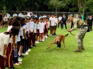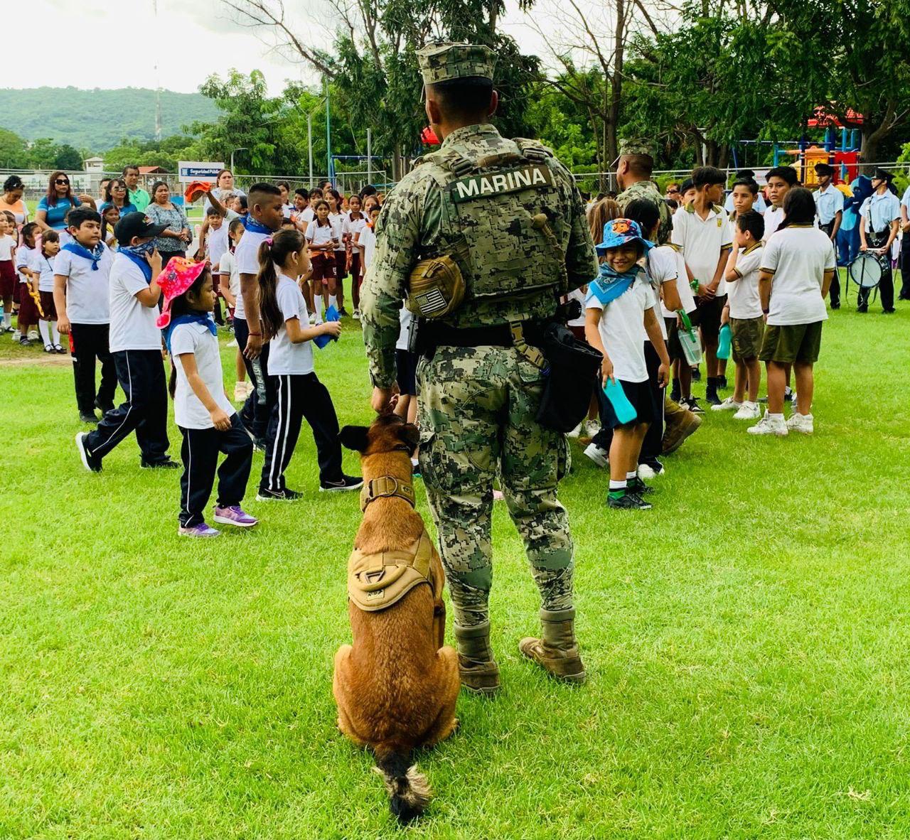 Niños de diferentes escuelas participaron en dinámicas realizadas por la Dirección de Seguridad Pública Municipal y elementos de la Secretaría de Marina. Disfrutaron de exhibiciones caninas, juegos infantiles, recorridos en patrullas y la presencia de botargas que alegraron la jornada.